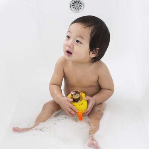 Ponorku řídí odvážná opička. Stačí jen zatáhnout a motor se roztočí. Koupání nebylo nikdy tak zábavné.