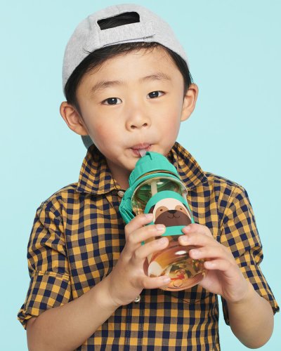 Krásná a praktická lahvička z kolekce ZOO, s brčkem, zavíracím víčkem, praktickým páskem na suchý zip.