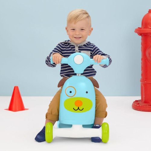Roztomilé barevné odrážedlo v motivu zvířátka z kolekce Zoo bylo navrženo tak, aby rostlo s Vaším děťátkem ve třech etapách. Odrážedlo nabízí zábavný způsob, jak povzbudit rozvoj motorických dovedností, rovnováhu a koordinaci děťátka během hraní. První etapa je určena pro začínající chodce. Motivuje nejmenší k tomu, aby tlačily nebo táhly odrážedlo, které je ve formě vozíku. Skvělé místo pro oblíbené hračky. Ve druhé etapě se úložný vozík změní na sedadlo a stává se z něj funkční odrážedlo. Jste připraveni na třetí etapu? Stačí vyndat sedadlo a vytáhnout nastavitelnou rukojeť pro Vaše děťátko. Jízda na koloběžce může začít. Zábavu znásobí tlačítko na přední straně pro světlomety, melodie a různé zvukové efekty.