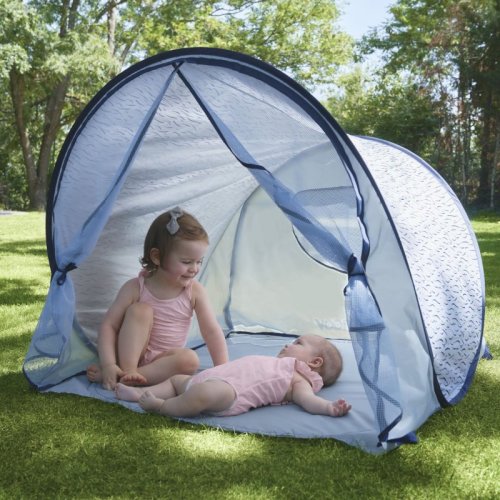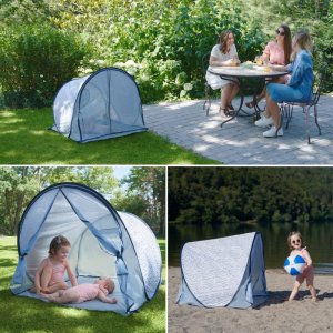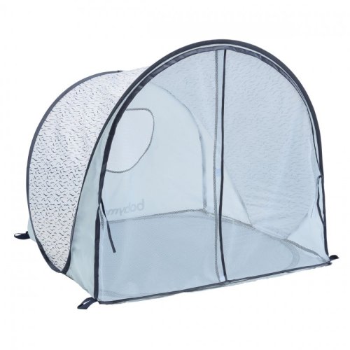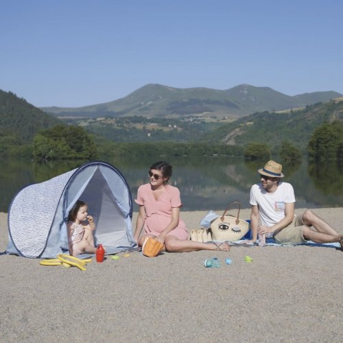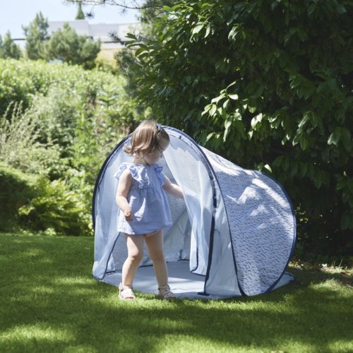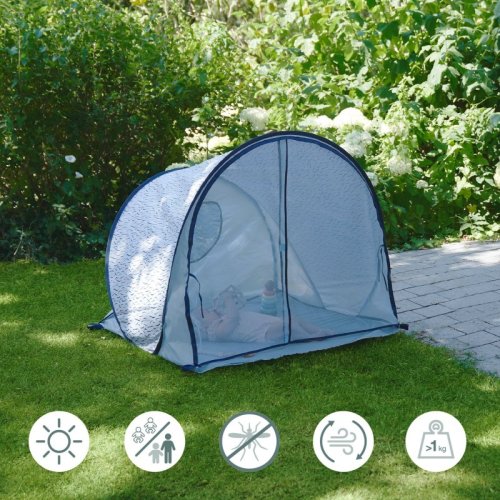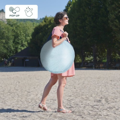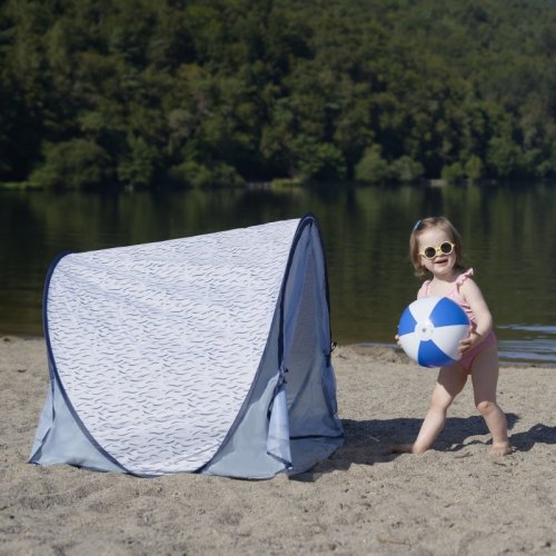Stan se snadno sestavuje a skládá díky pop-up systému, je dostatečně velký i pro 2 děti. Má velký otvor vpředu a dvě ventilační okénka vzadu pro optimální cirkulaci vzduchu. Síťkou v přední části lze celý stan uzavřít, čímž vytvoříte ochranu před hmyzem během léta. Dno stanu je nepropustné. Tento plážový stan je dodáván se 4 kolíky pro upevnění. Stan je velmi lehký (<1 kg) a snadno se přenáší v tašce s poutky, která je součástí.