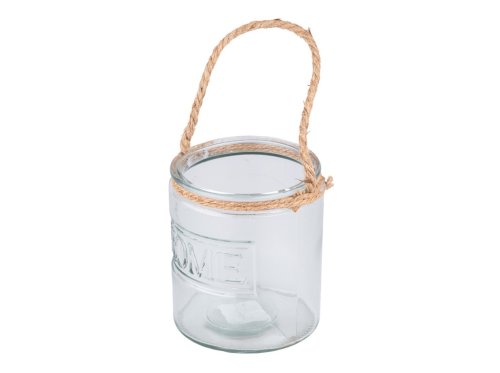 Tato větší varianta skleněné lampy (150 × 170 mm) v sobě spojuje jednoduchost čirého skla s přírodním lanem pro zavěšení. Perfektní jako závěsná dekorace do obývacího pokoje, zimní zahrady či na terasu. Vhodná na svíčku nebo drobný LED řetěz. Vytváří hřejivou a uklidňující atmosféru.