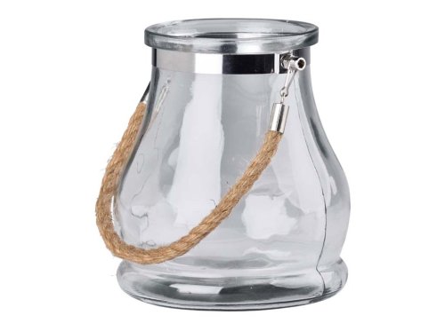 Tato výraznější skleněná lampa (160 × 180 mm) vynikne jako dominantní prvek ve vaší dekoraci. Čiré sklo a závěs z přírodního lana umožňují snadné zavěšení kdekoliv – uvnitř i venku. Vhodná pro větší svíčku nebo drobný světelný řetěz. Skvělá pro vytvoření hřejivé atmosféry v obývacím pokoji, na verandě nebo během letních večerů na zahradě.
