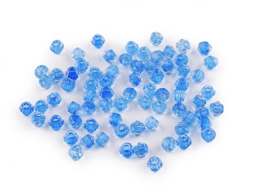 Skleněné korálky broušené Ø4 mm transparentní s průtahem - modrá (5 g)