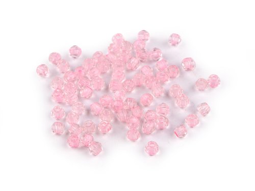 Skleněné korálky broušené Ø4 mm transparentní s průtahem - růžová nejsv. (5 g)