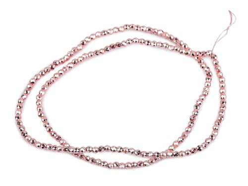 Skleněné korálky broušené ohňovky 2 mm metalické, na drátku - pudrová