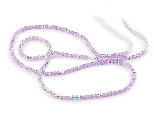 Skleněné korálky broušené ohňovky 2 mm s AB efektem, na šňůrce - fialová sv. AB