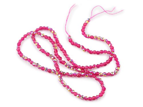 Skleněné korálky broušené ohňovky 2 mm s AB efektem, na šňůrce - fuchsiová tm. AB