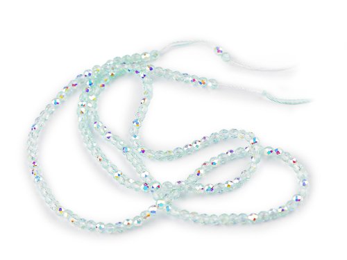 Skleněné korálky broušené ohňovky 2 mm s AB efektem, na šňůrce - mint AB (10 sáček)