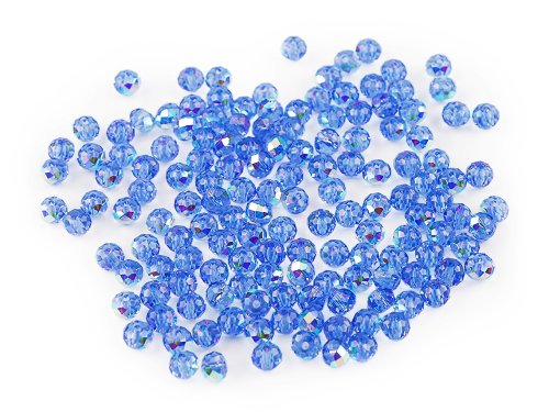 Skleněné korálky broušené ohňovky 4 mm s AB efektem - modrá AB