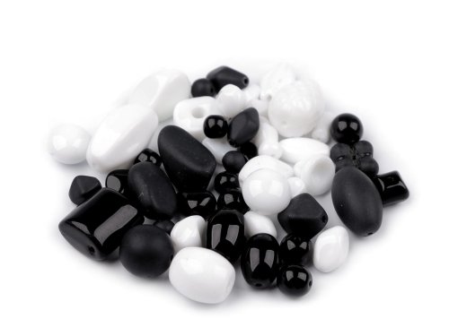 Skleněné korálky ramš mačkanice - bílá černá (50 g)