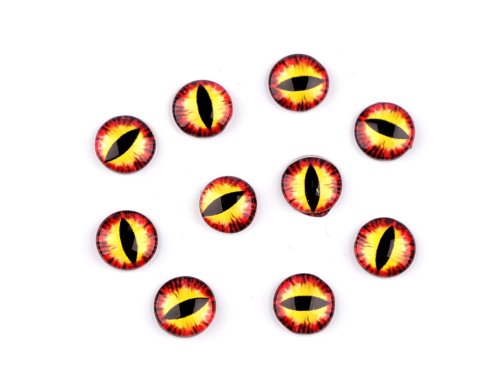 Skleněné oči k nalepení kočka, drak Ø10 a 12 mm - (10 mm) žlutá červená (10 ks)