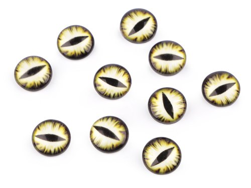 Skleněné oči k nalepení kočka, drak Ø10 a 12 mm - (12 mm) žlutá světlá (10 ks)