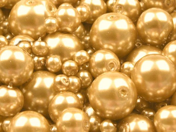 Skleněné voskové perly mix velikostí Ø4-12 mm - zlatá klasik (500 g)
