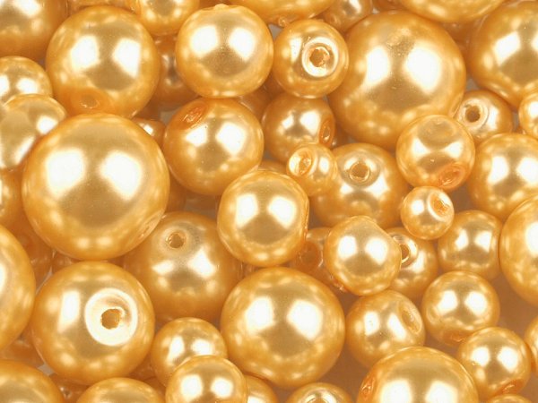 Skleněné voskové perly mix velikostí Ø4-12 mm - zlatá světlá (50 g)