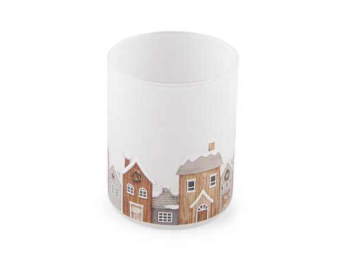 Skleněný svícen s motivy domečků můžete použít s klasickými čajovými svíčkami nebo LED svíčkami pro bezpečnější provoz. Během podzimu a zimy se postará o zútulnění brzkých chladných večerů.