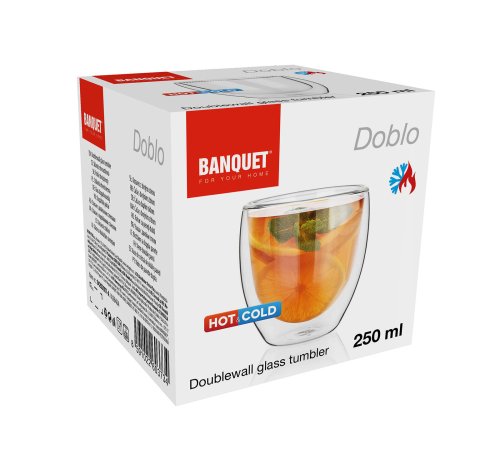 Dvoustěnná sklenice DOBLO je vhodná pro podávání studených i horkých nápojů. Dále díky použití dvou stěn vydrží nápoj ve skleničce déle teplý než v běžných skleničkách. Skleničky jsou vhodné do myčky.