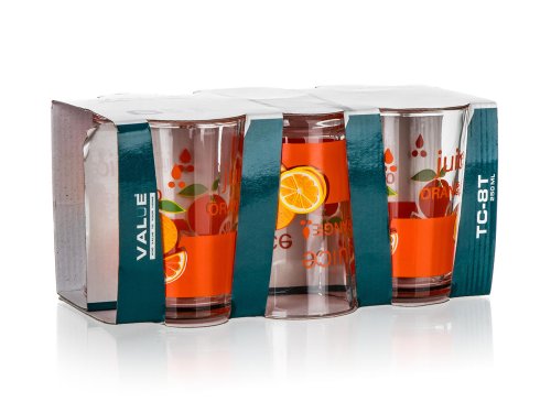 Sklenice 250 ml, s potiskem, VALUE ORANGE (6 ks).