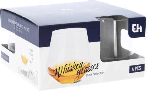 stylový set whiskey sklenic pro servírování whiskey i jiného alkoholu- vyrobeno z průzračného skla- čistě transparentní materiál a dokonalá brilance- vysoce odolné proti nárazům a poškrábání- vhodné do myčky na nádobí- rozměry sklenky: 9,5 x výška 10 cm- objem: 450 ml- sada obsahuje celkem 4 sklenice- značka: Excellent Houseware