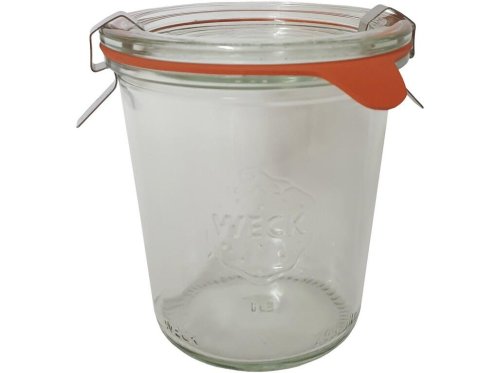 Zavařovací sklenice WECK 290 ml, včetně víčka, gumového těsnění a dvou kovových sponek.