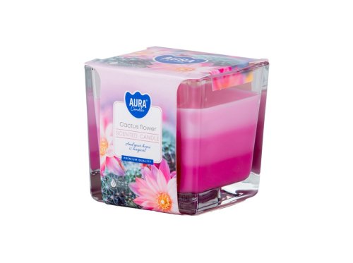 Sklo hranol 80x80 mm ~32h Cactus Flower tříbarevná vonná svíčka