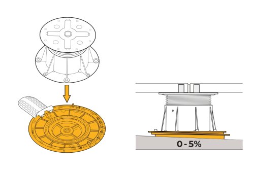 S pomocí korektoru U-PH5 lze upravit sklon od 0 do 5 % v intervalech po 0,5 %. Díky tomu je snadné vytvořit například požadovaný spád terasy nebo dorovnat podlahu na šikmém podkladu. Nastavení a použití je snadné, přesné, stabilní a trvalé.