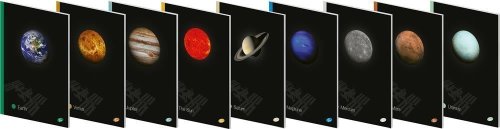 Planety zachycené na fotografiích tvoří kolekci Sluneční soustavy. Matný povrch obálky doplňují zvýrazněné lesklé detaily spolu se zajímavostmi o dané planetě. Formát A4, 40 listů (papír 80 g), linkovaný. Celkem mix 9 různých motivů.