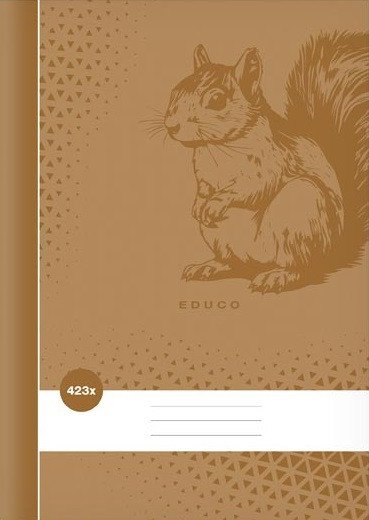 Školní sešit linkovaný/čistý ve formátu A4, v hnědé barvě, s motivem veverky, v deskách z křídového papíru. Každá stránka je ze 2/3 linkovaná a z 1/3 čistá. Sešit je určený pro žáky I. stupně ZŠ. <br> <br> Typ: 423x <br> Formát: A4 <br> Barva: hnědá <br> Počet listů: 20 <br> Motiv: veverka <br> Šířka řádku: 12 mm <br> Gramáž listů papíru: 60 g <br> Desky: matný křídový papír 200 g