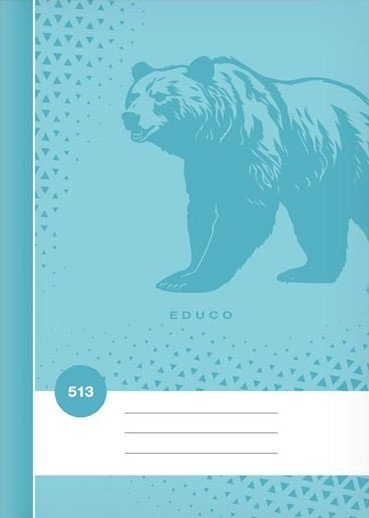 Školní linkovaný sešit ve formátu A5, v tyrkysové barvě, s motivem medvěda, v deskách z křídového papíru. <br> <br> Typ: 513 <br> Formát: A5 <br> Motiv: medvěd <br> Barva: tyrkysová <br> Šířka řádku: 12 mm <br> Počet listů: 10, linkované <br> Gramáž listů papíru: 60 g <br> Desky: matný křídový papír 200 g