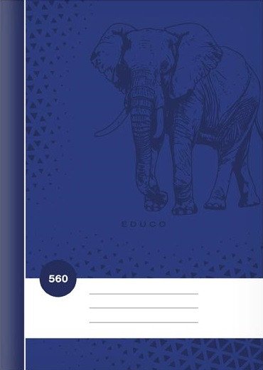 Školní sešit čistý, bez linek ve formátu A5, v tmavě modré barvě, s motivem slona, v deskách z křídového papíru. <br> <br> Typ: 560 <br> Motiv: slon <br> Formát: A5 <br> Barva: tmavě modrá <br> Počet listů: 60, bez linek <br> Gramáž listů papíru: 60 g <br> Desky: matný křídový papír 200 g