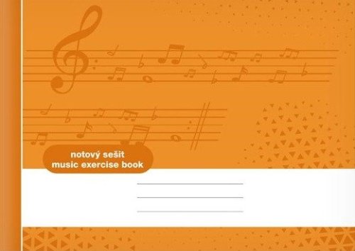 Školní notový sešit ve formátu A5 na šířku, v oranžové barvě, v deskách z křídového papíru. Sešit je určený do hudební výchovy pro zápis not. <br> <br> Formát: A5<br> Barva: oranžová<br> Šířka řádku: 2 mm<br> Počet listů: 8, linkované<br> Gramáž listů papíru: 60 g<br> Desky: matný křídový papír 200 g