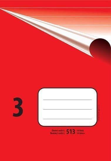 Klasický školní sešit číslo 513, formát A5, 10 listů, linkovaný, 12 mm linky. <br> <br> Školní sešity mají pevnou papírovou obálku v klasickém retro designu. Na přední obálce je několikařádkový prostor pro nadepsání jména a příjmení, třídy nebo školního předmětu. <br> <br> Sešity mají vyšší gramáž papíru - to zajišťuje vyšší pevnost v ohybu i tahu, menší průsvitnost a větší pohodlí při psaní. Sešity jsou vhodné pro psaní tužkou i perem. <br> <br> Školní sešit 513 <br> • Formát sešitu: A5 <br> • Lineatura sešitu: linkovaná <br> • Linky: 12 mm <br> • Počet listů v sešitu: 10 <br> • Papír: s vyšší gramáží 70g/m2 <br> • Vazba: šitá
