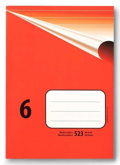 Klasický školní sešit číslo 523, formát A5, 10 listů, linkovaný, 12 mm linky. br brŠkolní sešity mají pevnou papírovou obálku v klasickém retro designu. Na přední obálce je několikařádkový prostor pro nadepsání jména a příjmení, třídy nebo školního předmětu. br brSešity mají vyšší gramáž papíru - to zajišťuje vyšší pevnost v ohybu i tahu, menší průsvitnost a větší pohodlí při psaní. Sešity jsou vhodné pro psaní tužkou i perem. br brŠkolní sešit 523 br• Formát sešitu: A5 br• Lineatura sešitu: linkovaná br• Linky: 12 mm br• Počet listů v sešitu: 20 br• Papír: s vyšší gramáží 70g/m2 br• Vazba: šitá