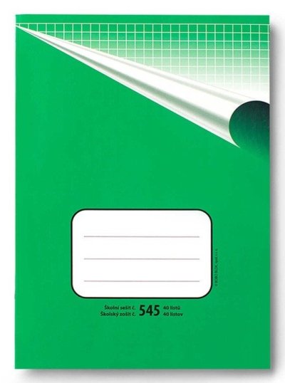 Klasický školní sešit číslo 545, formát A5, 40 listů, čtverečkovaný. br brŠkolní sešity mají pevnou papírovou obálku v klasickém retro designu. Na přední obálce je několikařádkový prostor pro nadepsání jména a příjmení, třídy nebo školního předmětu. br brSešity mají vyšší gramáž papíru - to zajišťuje vyšší pevnost v ohybu i tahu, menší průsvitnost a větší pohodlí při psaní. Sešity jsou vhodné pro psaní tužkou i perem. br brŠkolní sešit 545 br• Formát sešitu: A5 br• Lineatura sešitu: čtverečkovaná, 5 x 5 mm br• Počet listů v sešitu: 40 br• Papír: s vyšší gramáží 70g/m2 br• Vazba: šitá