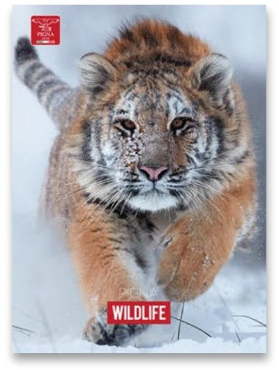 Školní sešit Pigna Animal. Formát sešitu je A4 se šitou vazbou. Obsahuje 40 linkovaných listů o gramáži 80 g. Mix motivů.