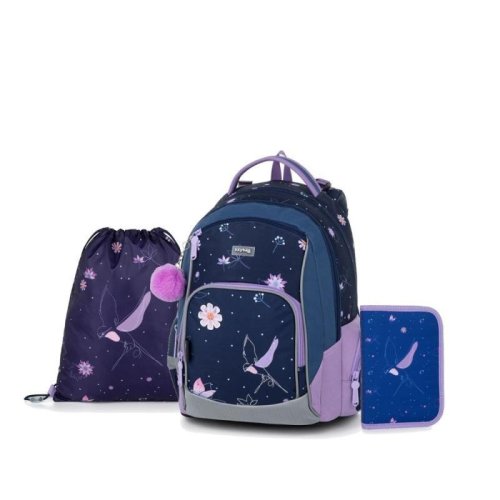 Školní batoh z řady OXY GO ve svém designovém provedení zaujme každého kluka i holku. Perfektní tvar batohu ukrývá nejen anatomicky tvarovaná a prodyšná záda, ale také možnost nastavit si ramenní popruhy pro lepší pohodlí a komfortnější nošení. Dvě vnitřní kapsy nabízí dostatek prostoru pro učebnice, sešity i věci na volný čas. Pevné dno zabraňuje jak ušpinění zvenku, tak protečení čehokoliv, co se vylije uvnitř. Po stranách najdete dvě větší kapsy. Batoh nabízí velkorysé množství nejrůznějších kapes, ať už velkých nebo i malých. Mysleli jsme také na bezpečnost vašich dětí, proto batohu nechybějí reflexní prvky. Batoh je ideální na první stupeň 1. - 3. třídu pro děti vysoké od 125 cm. Penál: Jednopatrový školní penál s 2 chlopněmi, prázdný obsahuje 25 gumových poutek pro uchycení psacích potřeb. Na vnitřních chlopních jsou průhledné fólie pro rozvrh hodin. Sáček: Sáček na přezůvky. Uzavírání stažením šňůrek, možnost nosit i na zádech nebo připevnit ke školnímu batohu. Materiál 100% polyester.