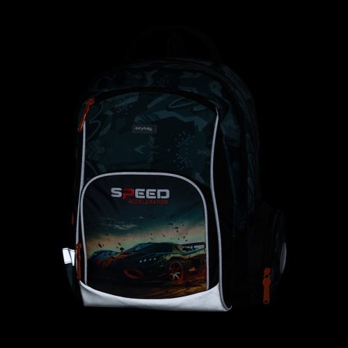 Školní batoh OXY GO zaujme moderním designem a promyšlenou funkčností. Má anatomicky tvarovaná, prodyšná záda a nastavitelné ramenní popruhy pro pohodlné nošení. Přidané háčky umožňují uchycení dlouhých popruhů. Vnitřní kapsy nabízí dostatek místa na učebnice, sešity i další potřeby, pevné nepromokavé dno chrání obsah před ušpiněním a protečením. Boční kapsy, jedna na zip a jedna otevřená, slouží např. na láhev. Reflexní prvky zajišťují bezpečnost. Batoh je ideální pro děti od 1. do 3. třídy vysoké od 125 cm. Délka zádového panelu je 39 cm, objem 22 l, hmotnost 930 g, nosnost 8 kg. Sáček: Praktický na cvičky nebo volnočasové aktivity, uzavírá se šňůrkami. Penál: Jednopatrový se dvěma chlopněmi, poutka na psací potřeby a průhledná fólie na rozvrh hodin.