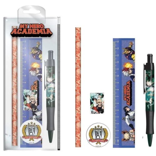 Školní set s licenčním motivem. Set obsahuje pravítko, gumu, ořezávátko, tužku a propisku. Obal lze použít jako penál.