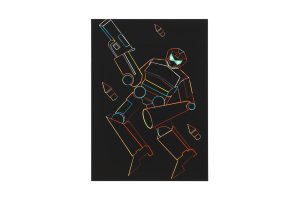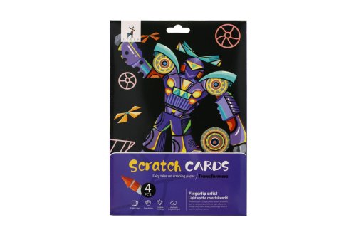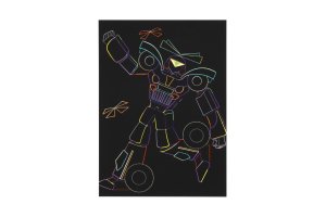 Škrabací obrázek, kde perem šeškrábete dle vlastní fantazie robota. Doškrabejte mu např. uniformu, atp. Dítě nakonec získá obrázek, kterým si může vyzdobit pokojíček, přičemž samo získá mnoho potřebných dovedností, jako je pozornost, trpělivost, opatrnost a přispěje k rozvoji tvořivého talentu a motoriky. Sada obsahuje 4 obrázky formátu A4. Rozměry balení 20 x 27 x 0,5 cm. Vhodné pro děti od 3 let.