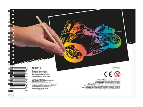 Vyškrabovací notes s perem. Dopřejte si chvilku odpočinku a kreativně se vydovádějte na vyškrabovacím notesu. Na jednotlivých listech můžete pomocí vyškrabovacího pera vytvářet různé pestrobarevné obrázky. Dítě si zlepší motoriku ruky a naučí se kreslit.NOTES OBSAHUJE:- 10 listů - 1 škrabátkoVAROVÁNÍ:Nevhodné pro děti do 3 let. Obsah malých částí - hrozí nebezpečí udušení.Dodáváme v plastovém sáčku.Uvedená cena je za 1 balení.