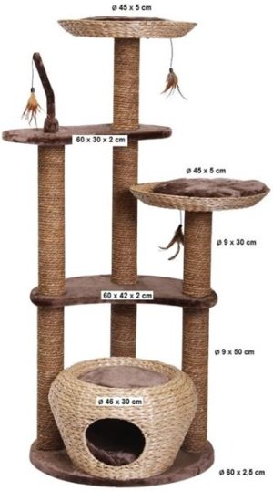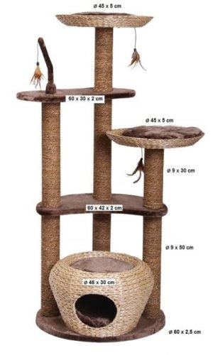 Škrabadlo z vodního hyacintu je svou elegantní formou ozdobou každé místnosti. Velmi moderní a kvalitní německé škrabadlo pro kočku. Pohodlné odpočívadlo na škrábání s pelíškem a polstrovanou vyhlídkou. Kočky musí mít možnost k broušení svých drápků. Ve volné přírodě jim k tomu nejlépe slouží stromy a jejich kůra. V bytě jim pak musíte Vy nabídnout tu pravou a vhodnou alternativu. Jinak si malý nezbeda najde náhradu například ve Vašem nábytku, křesle nebo koberci. Rozměry: