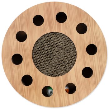 Interaktivní kartonové škrabadlo pro kočky se šantou, barevné provedení ve vzoru dub.