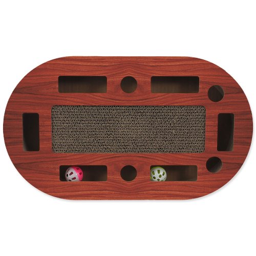 Interaktivní kartonové škrabadlo pro kočky se šantou, barevné provedení ve vzoru třešeň.