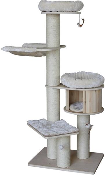 základna 76 x 56 cm celková výška 176 cm sisalové kmeny ø 15 cm domeček ø 45 x 28 cm hamak 60 x 55 cm horní odpočívadlo, pelíšek ø 47 x 11 cm