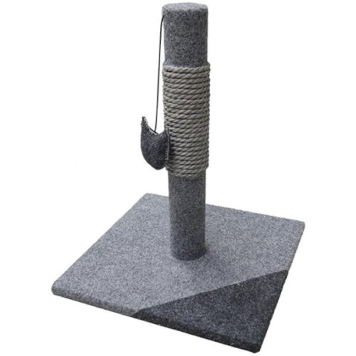 Jednoduché škrabadlo je vyrobené z kombinace dřeva, plsti a pevného lana ze splétaného papíru. Zavěšená hračka obsahuje catnip (šantu kočičí), která láká ke hře. Škrabadlo je vhodné pro koťata a malé kočky. Rozměry (cca): 29 × 29 × 35,5 cm Materiál: plsť, dřevo, papír Barva: šedá Upozornění: Kočky mohou reagovat na vůni šanty kočičí rozdílně.