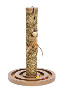 Škrabadlo je omotané pevným lanem z mořských řas. Kočka si na něm může rozsáhle brousit drápy, aby o ně pečovala a zkracovala je.