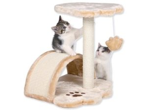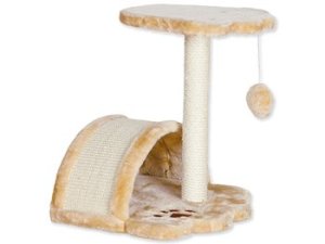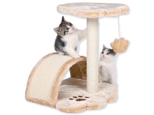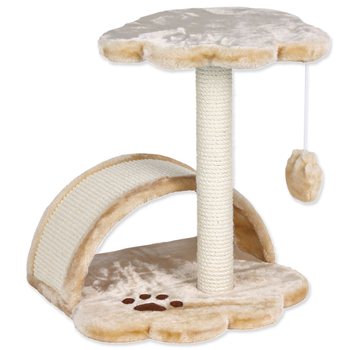 Skvělé odpočívadlo se škrabadlem pro kočky. Odpočívadlo je pokryté měkkým plyšem. Základní deska ve tvaru tlapky. Na ní je prolézací oblouk, který je pokrytý sisalem a slouží k obrušování drápků. Na sloupku je polstrované ležení pro kočku, které slouží k odpočinku. Sloupek má průměr 6 cm a slouží jako škrabadlo. Je pokrytý sisalem. Součástí je míček na provázku, který bude neustále kočku lákat ke hře.