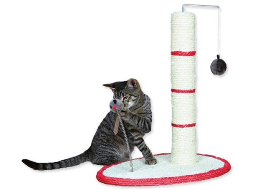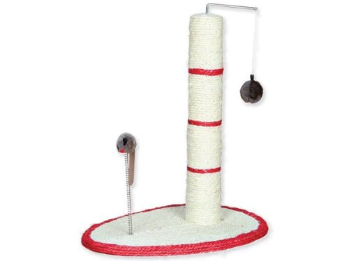 Hračka škrabadlo se sloupkem pro kočky. Slouží k obrušování drápků a k zábavě vaší kočky. Je vyrobeno ze sisalu. Hlavní sloupek je celý omotán sisalem, který slouží ke škrábání. Součástí je myška na pružině a míček na provázku, kteří zabaví kočku na dlouhou dobu. Okraj škrabadla je barevně lemován.
