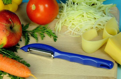 Stranová škrabka s pilkovým ostřím pro pravou i levou ruku. Oloupe brambory, jablka, kivy, rajčata, mrkev, křen, nakrouháte i zelí na přílohy.