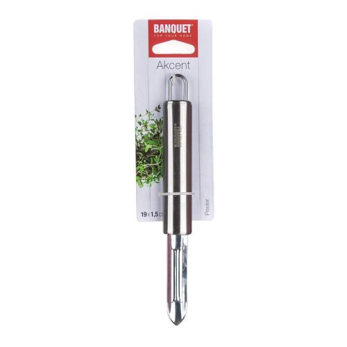 Oboustranná škrabka AKCENT vyrobená z nerezové oceli, je určena pro profesionální i domácí použití. Škrabka je opatřena praktickým očkem pro možnost zavěšení, snadno se udržuje a lze mýt v myčce na nádobí. Řada kuchyňského náčiní AKCENT splňuje náročné požadavky profesionálů a je vhodná i pro domácí použití. Jednoduchý funkční design zabezpečuje nadčasovost a dlouhou morální i kvalitativní životnost všech výrobků.