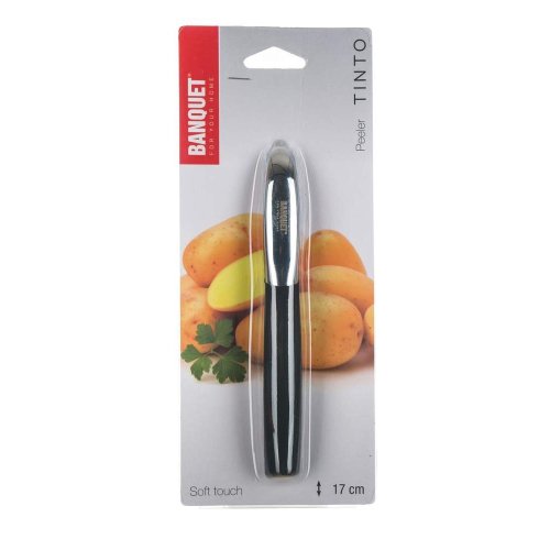 Univerzální škrabka TINTO je skvělá na loupání různých druhů ovoce a zeleniny. Škrabka je vyrobená z odolné slitiny zinku s pochromovaným povrchem. Rukojeť je ze speciálního plastu, který má protiskluzovou úpravu. Výrobek není vhodný do myčky nádobí.